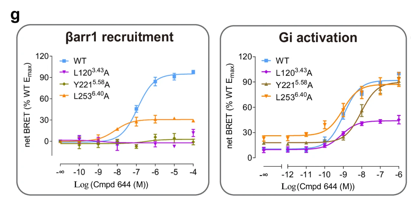 华中科技大学及上海科大研究团队发表在Nature Communications 上Mechanistic insights into the versatile stoichiometry and biased signaling of the apelin receptor-arrestin complex阐述了与临床药物类似物结合的 APJR-β-arrestin1 结构,揭示了与差异化 β-arrestin 募集相关的 2:2 和 2:1 化学计量学。通过比较与同一配体结合的两个转导偶联 APJR 结构,确定了引导偏向信号传导的关键残基和基序。发现凸显了APJR与β-arrestin和Gi蛋白偶联的灵活化学计量学,为理解偏向激动作用和指导治疗学发展建立了框架,团队使用来 PHERAstar® FSX 进行BRET测量β-arrestin募集和G蛋白活性性。 [更多资讯,请关注进科驰安微信.]