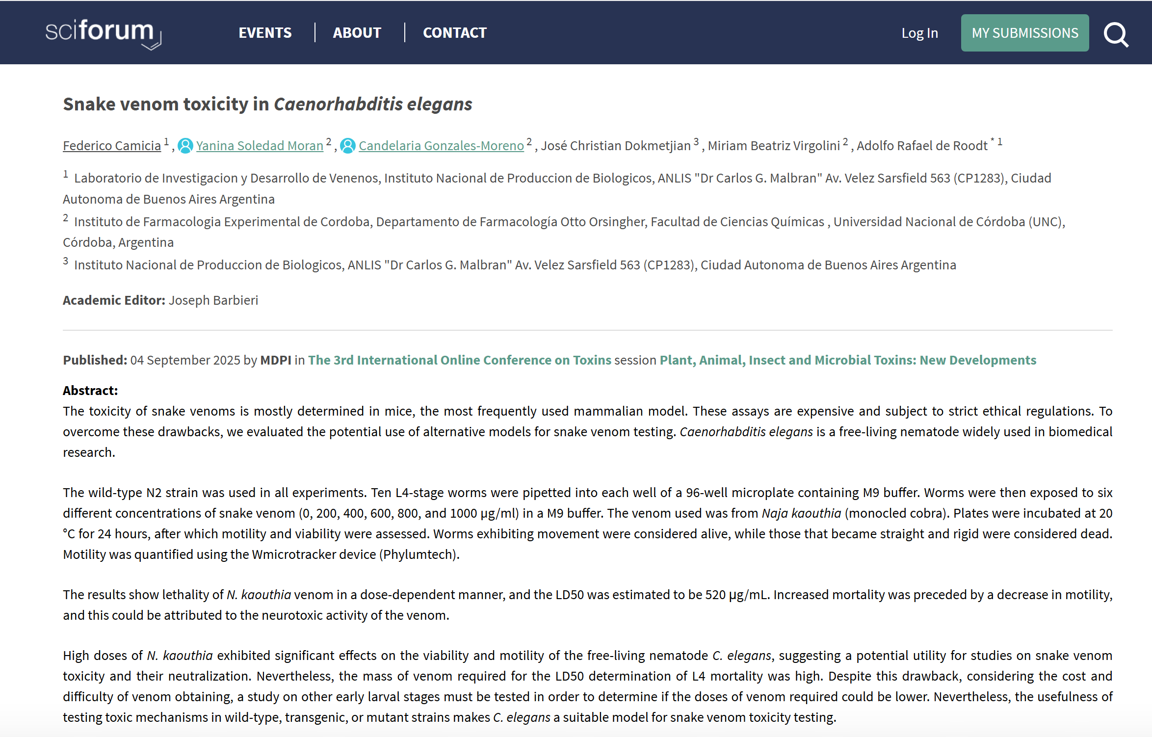 WMicrotracker小动物活动力分析系统文章分享,阿根廷研究团队发表名为 “Snake venom toxicity in Caenorhabditis elegans” 报告