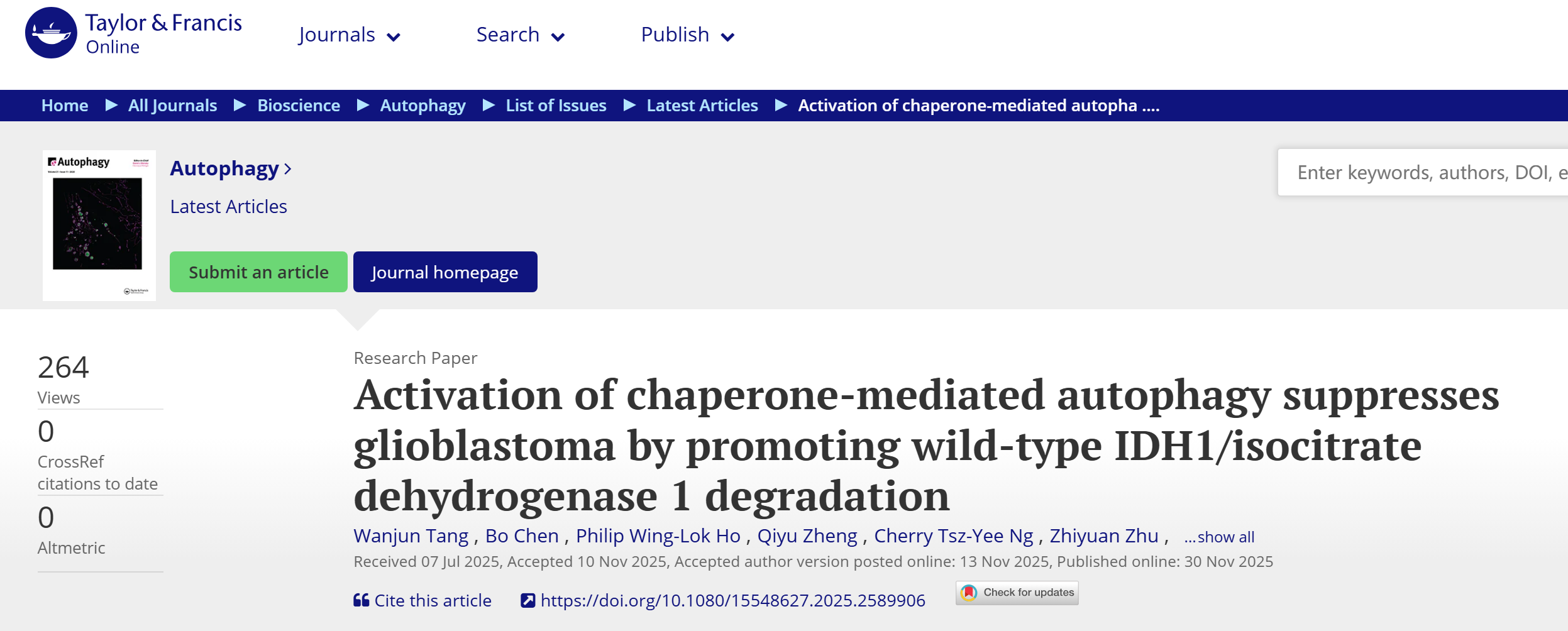 香港大学,香港理工大学等科研团队发表在Autophagy 上 “Activation of chaperone-mediated autophagy suppresses glioblastoma by promoting wild-type IDH1/isocitrate dehydrogenase 1 degradation” 报告胶质母细胞瘤发病机制中调控IDH1表达的机制。发现分子伴侣介导的自噬(CMA)是胶质母细胞瘤进展中 IDH1 的关键调节因子。为了确保实验流程顺利,团队采用了BMG Clariostar Plus高端酶标仪。[更多资讯,请关注进科驰安微信.]