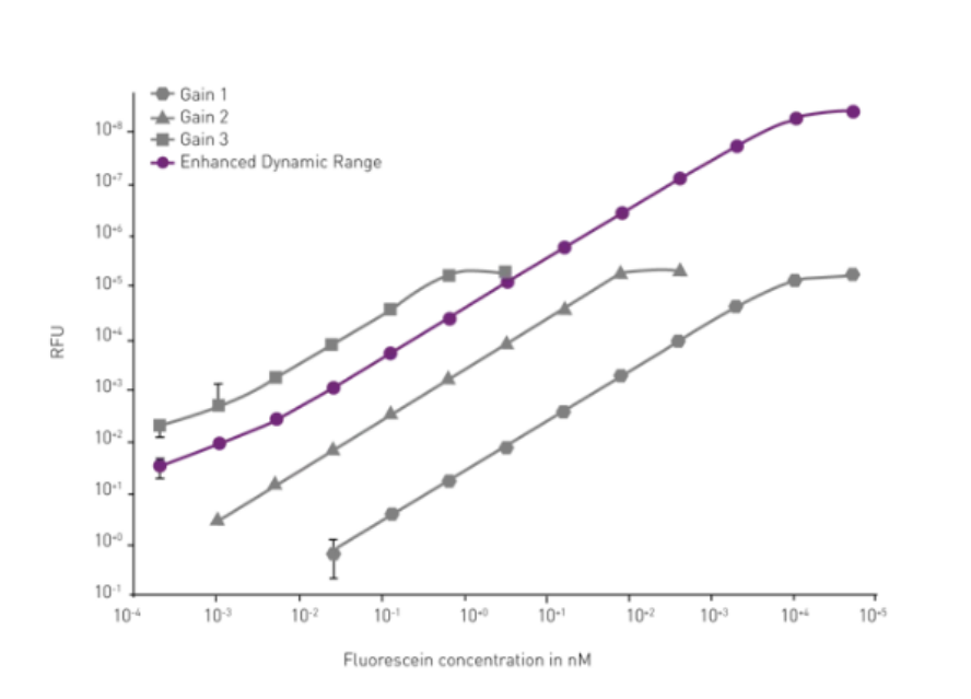 图1: EDR技术,显示一键启动后自动处理不同浓度样品,信号均完美检测
