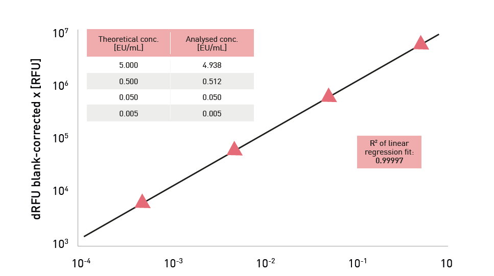 传统内毒素检测方法(如LAL法)依赖鲎血提取物,存在操作繁琐、批次差异及伦理争议。ENDOZYME® II基于重组因子C技术,完全无需动物来源成分,已成为国际药典认可的标准方法(欧洲药典2.6.32章,美国药典将于2025年5月收录)。VANTAstar®的EDR技术在此解决方案中起到了核心作用:它无需手动预实验和增益调整,可自动为每个微孔选择最佳信号检测范围,确保极高与极低浓度的内毒素信号能在同一次运行中被准确捕获,杜绝信号溢出或丢失,极大提升了数据的可靠性与实验效率。