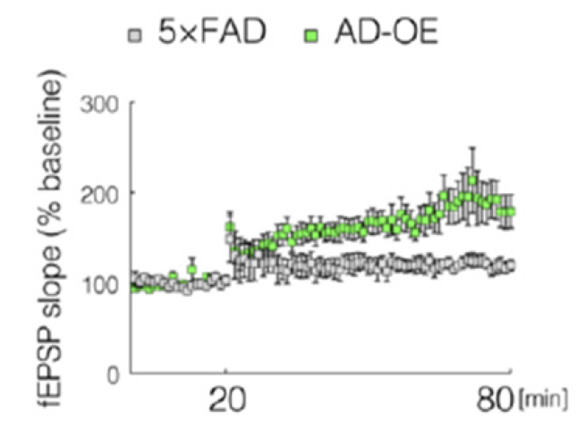 此外,在5×FAD阿尔茨海默病模型小鼠中,研究人员通过神经元过表达SELENOK进行干预后,借助MED64系统成功记录到恢复的LTP响应(图1)。干预组小鼠fEPSP幅度显著高于未处理组,表明突触功能得到改善。该系统再次证明其适用于病理条件下突触功能的精准评估与药效分析。