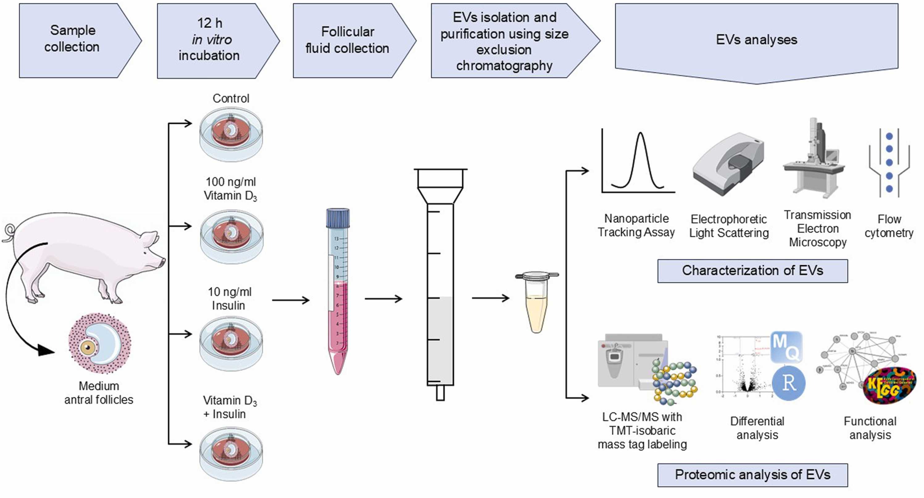 来自波兰研究团队发表在Reproductive Biology 上名为Vitamin D3 and insulin treatment affects porcine follicular fluid-derived extracellular vesicles characteristics and proteome cargo,研究关于维生素 D3 和胰岛素(I)单独或联合治疗(VD)是否会影响猪卵泡液 (FF) 来源的细胞外囊泡 (EVs) 的特征和蛋白质货物。发现FF-EVs是脂联素的载体,而脂联素在VD+I组中上调。VD和I似乎是猪FF-EVs特性和蛋白质货物的新型调节剂,因此可以通过EV介导的途径改变卵泡功能。为了确保实验流程顺利,团队采用了ApogeeFlow 纳米流式。[更多资讯,请关注进科驰安微信.]